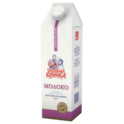 პასტერიზებული სასმელი რძე „ბაბუშკინა კრინკა“, ცხიმის შემცველობა – 3,2%.