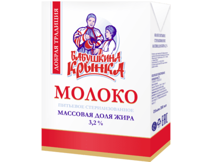 პასტერიზებული სასმელი რძე „ბაბუშკინა კრინკა“, ცხიმის შემცველობა – 3,2%.