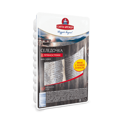 ქაშაყი ფილე "Bochkovaya" სანელებლებით, კანით, ზეთში
