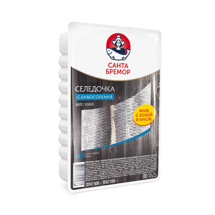 ქაშაყი ფილე "Bochkovaya" მსუბუქად დამარილებული კანი, ზეთში 500 გ