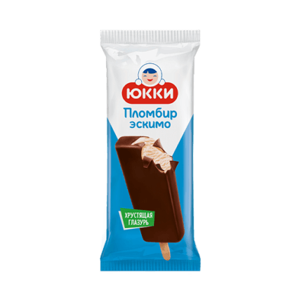 "Yukki Plombir რძის კრემზე" 'ვანილის არომატიზებული ნაყინი კაკაოს შემცველი ცხიმის ჭიქში, ესკიმო 65 გ